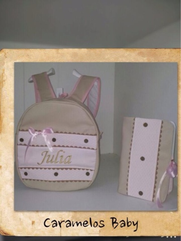 Os dejo dos conjuntos de mochila y porta pañales a juego con su nombre personalizado